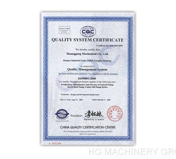HG machinery is China top leading company of pump industry and by establishing strict quality policy and serving the society with full heart, HG has obtained various honors and certificates from well-know organizations and local authorities, such as ISO9001,CE, API, and society approval of CCS, BV, RINA, NK,KR,ABS etc,